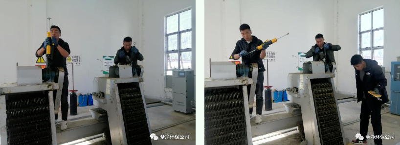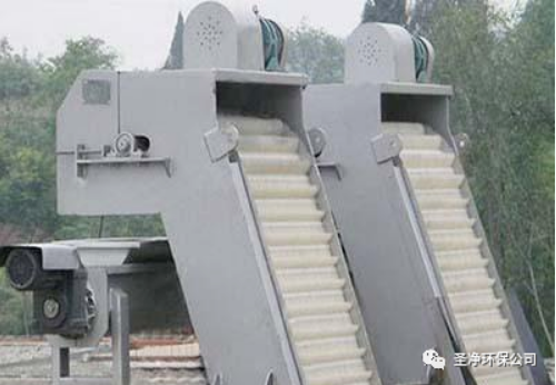 耙齒鏈運轉(zhuǎn)到設(shè)備的上部時,由于槽輪和彎軌的導(dǎo)向,使每組耙齒之間產(chǎn)生相對自清運動,絕大部分固體物質(zhì)靠重力落下。另一部分則依靠清掃器的反向運動把粘在耙齒上的雜物清掃干凈。