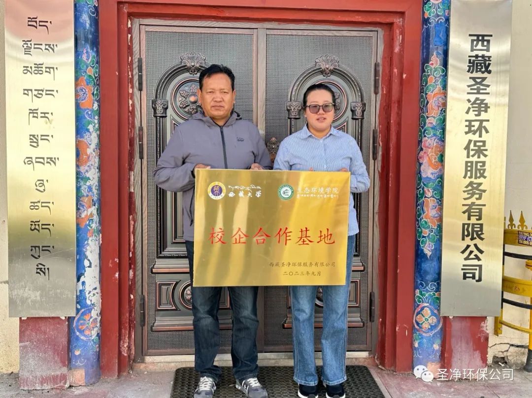 西藏大學(xué)生態(tài)環(huán)境學(xué)院學(xué)生科就業(yè)負(fù)責(zé)人高爽等一行領(lǐng)導(dǎo)及西藏圣凈環(huán)保服務(wù)有限公司總經(jīng)理次仁等高管出席了本次簽約揭牌儀式。